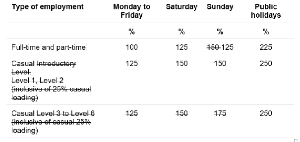 • The limited adjustment to Sunday penalty rates made in the 2014 Decision was considered by the Full Bench in that case to be sufficient to ensure that the Restaurants Award achieved the modern awards objective – that is, the Sunday penalty rates otherwise prescribed by the award were not inconsistent with the modern awards objective.